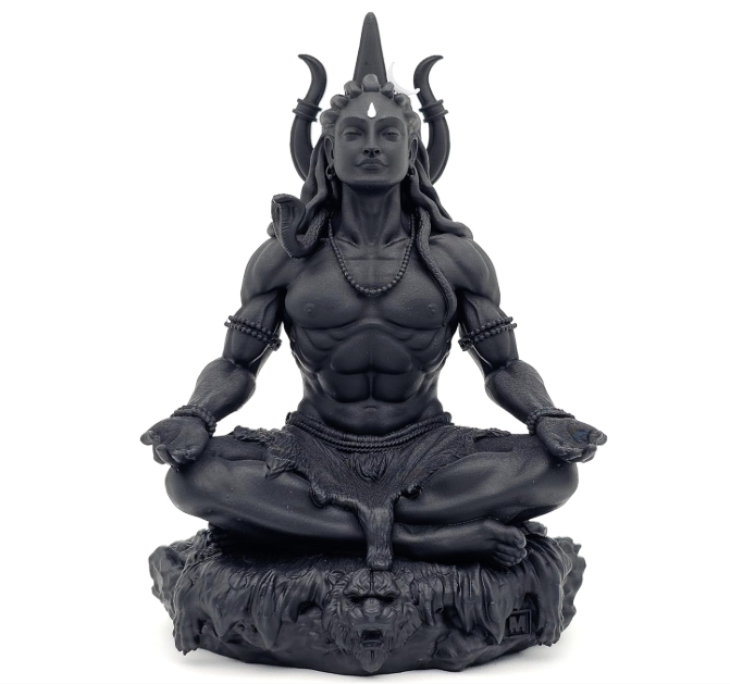 Mahayogi Shiva Murti, 8.89 cm Height, Black, 3D Printed, Hindu Religious Statue of Adiyogi Shiva